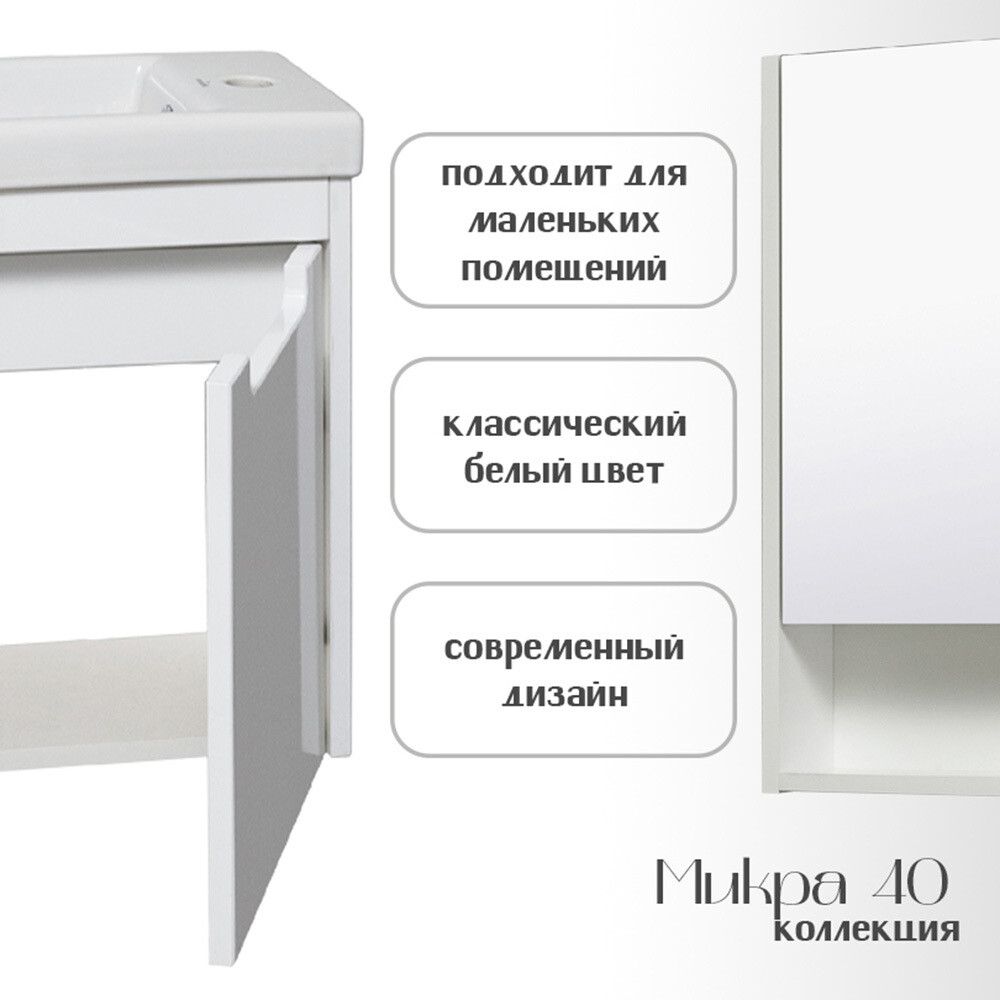 Тумба под раковину Runo Микра 40 см подвесная белая (1078)