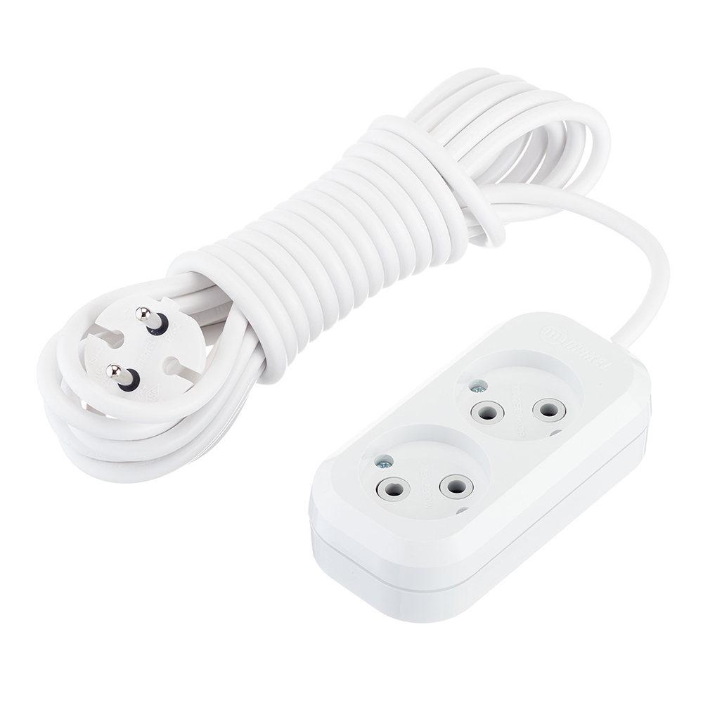 Удлинитель Makel 2 розетки 5 м ПВС 2х0,75 кв.мм 10 А 2,2 кВт белый (MGP104)