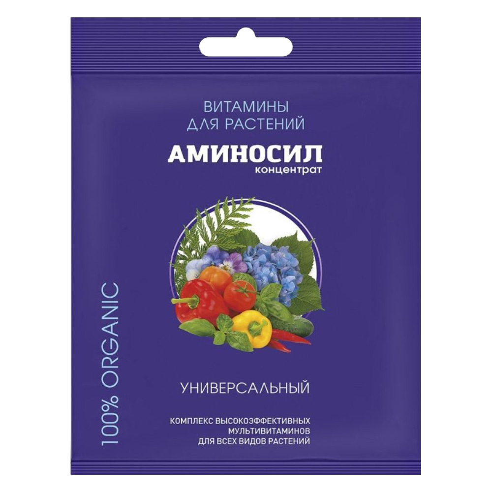 Витамины для растений универсальные Аминосил предназначены для выращивания овощных и ягодных культур (томатов и огурцов, картофеля и кабачков помидор и перцев, лука и капусты, клубники и земляники) однолетних и многолетних цветов (роз и пионов, хризантем и гортензий, петунии и орхидеи, комнатные и садовые цветы) газонных трав, плодовых и декоративных деревьев. Данный продукт содержит комплекс из питательных веществ, макро- и микроэлементов, которые снабжают растения всем необходимым для хорошего здоровья и роста. Он обеспечивает их эффективной подкормкой, благодаря чему увеличивается урожайность и качество плодов. Удобрение предназначено для использования на рассаде, цветах, садовых растениях, овощах и картофеле. Оно подойдет для всех почв и независимо от типа. Подкормка может использоваться в любое время года, в любом количестве и с любым типом воды. Он гарантирует здоровое развитие растений, помогает им поддерживать оптимальную температуру, развиваться мощной корневой системой и сохранять высокую продуктивность. Удобрение также является идеальным решением для комнатных растений, таких как фикус, поскольку они могут быть чувствительными к питательным веществам. Благодаря специальной формуле, данное удобрение обеспечивает здоровый и мощный рост. Еще одним плюсом удобрения для растений является более длительный срок урожайности и успешного развития в целом.