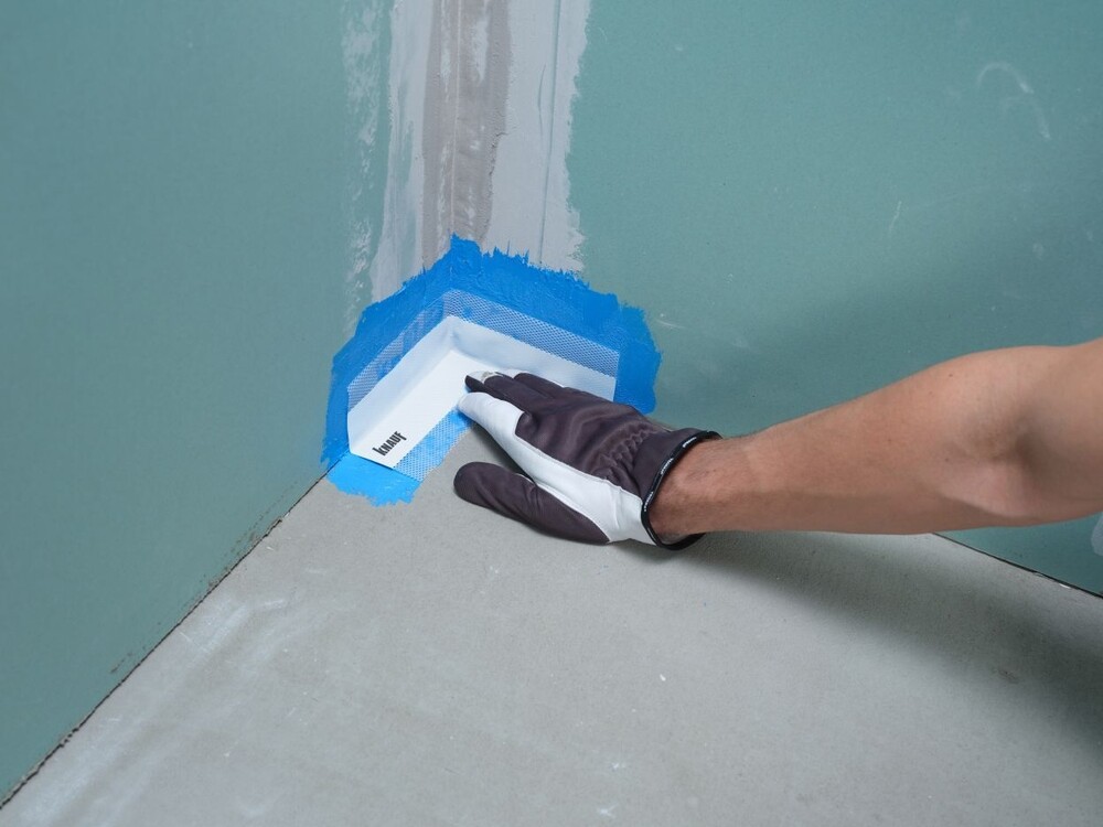 Внутренний угол Кнауф – эластомер, нанесенный на полиэфирную сетку или эластомер, покрытый полиэфирным полотном с двух сторон.