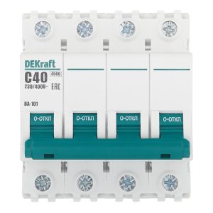 Первоначальная цена составляла 1533 ₽.1488 ₽Текущая цена: 1488 ₽.шт.Автоматический выключатель модульный Dekraft BA-101 4Р 40А тип C 4,5 кА 230/400 В (11094DEK)