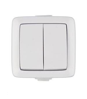 Выключатель Hegel Alfa двухклавишный накладной белый (ВА10-251)