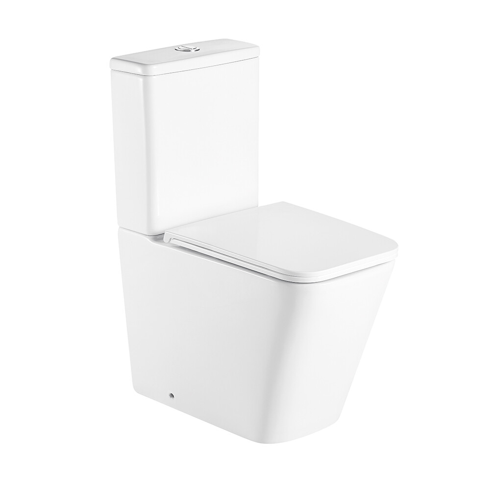 Унитаз-компакт серии TX Rimless современной квадратной формы с близким примыканием к стене.