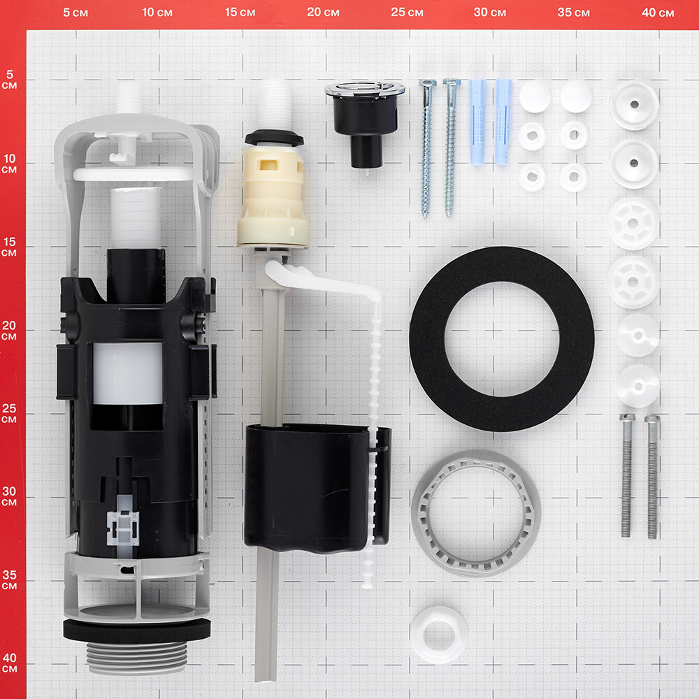Имеет косой выпуск, выход нижний 1/2″ нар.(ш) для подключения гибкой подводки и кнопочную двухрежимную арматуру.