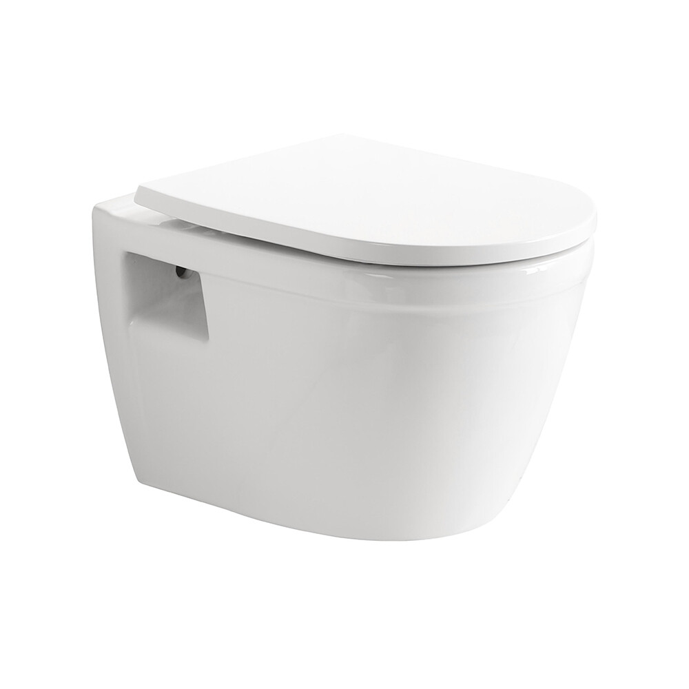 Подвесной унитаз лаконичной формы с открытым креплением для легкого монтажа.