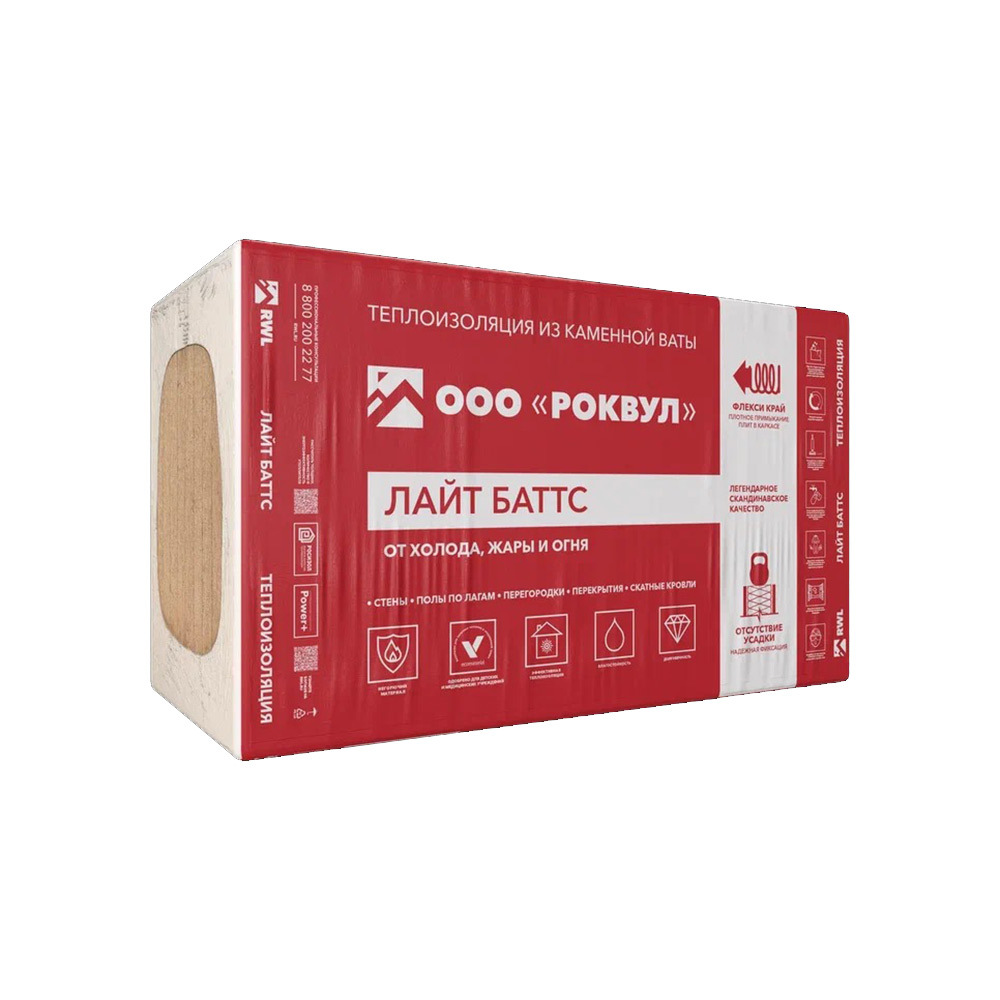 Утеплитель Роквул Лайт Баттс 50х600х1000 мм 6 кв.м