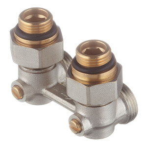 Предназначен для подключения стальных панельных радиаторов с нижним входом/выходом при расположении присоединительных патрубков с межосевым расстоянием 50 мм и встроенным термостатическим клапаном. Узлы нижнего подключения радиаторов используют для ручного контроля протока теплоносителя, проходящего через радиатор в двухтрубных системах водяного отопления. Узел снабжен встроенными шаровыми кранами, с помощью которых можно полностью отключить прибор от системы.