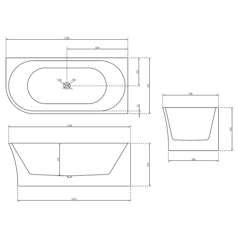 Ванна Abber, выполненная из 100% санитарного акрила, имеет ассиметричную форму. Сливное отверстие расположено по центру. Размер ванны составляет 170х78 см, объем — 225 л. Ванна выдерживает максимальную нагрузку 450 кг.