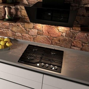 Газовая варочная панель изготовлена из закаленного стекла лаконичного черного цвета, снабжена чугунными решетками, имеет ширину 600 мм. В модели используется механическое управление. Панель оснащена 4 конфорками, одна из которых Wok с тройным рядом пламени для приготовления блюд азиатской кухни. Варочная панель имеет электроподжиг и газ-контроль, прекращающий подачу газа, когда пламя случайно гаснет. Подходит для магистрального и баллонного газа.