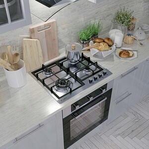 Газовая варочная панель шириной 600 мм изготовлена из нержавеющей стали, снабжена решетками с чугунным напылением. Модель имеет механическое управление, 4 конфорки, одна из которых быстрого нагрева, а другая Wok с тройным рядом пламени для приготовления блюд азиатской кухни. Варочная панель также имеет электроподжиг и газ-контроль, прекращающий подачу газа, когда пламя случайно гаснет. Подходит для магистрального и баллонного газа.