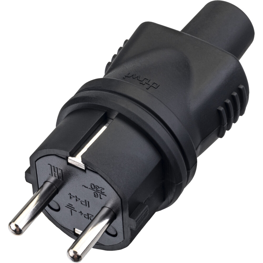 Вилка штепсельная Düwi с заземлением IP44 черная