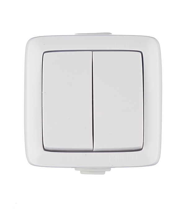 Выключатель Hegel Alfa двухклавишный накладной белый (ВА10-251)