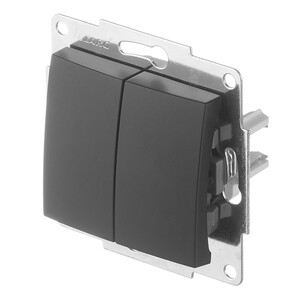 Предназначен для управления раздельными источниками света. Выключатель двуклавишный черный бархат, скрытой установки.