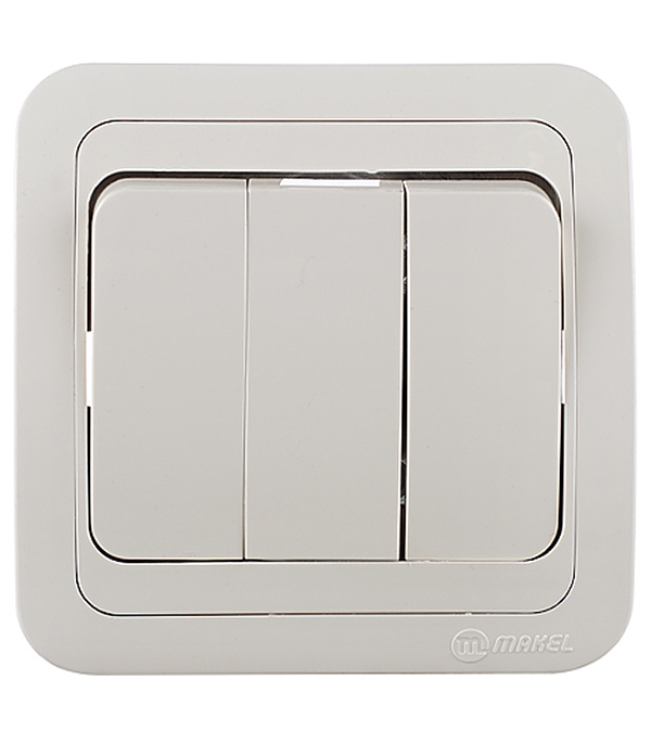 Выключатель Makel Mimoza трехклавишный встраиваемый бежевый (25091)