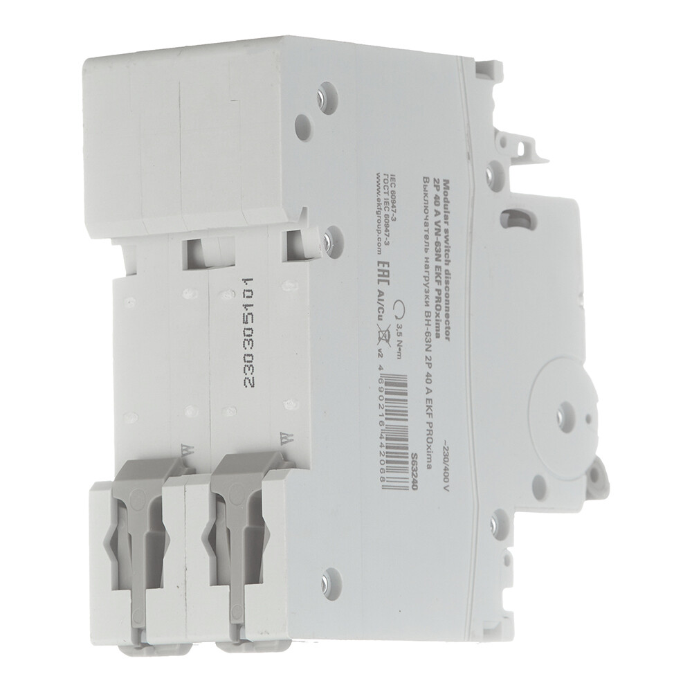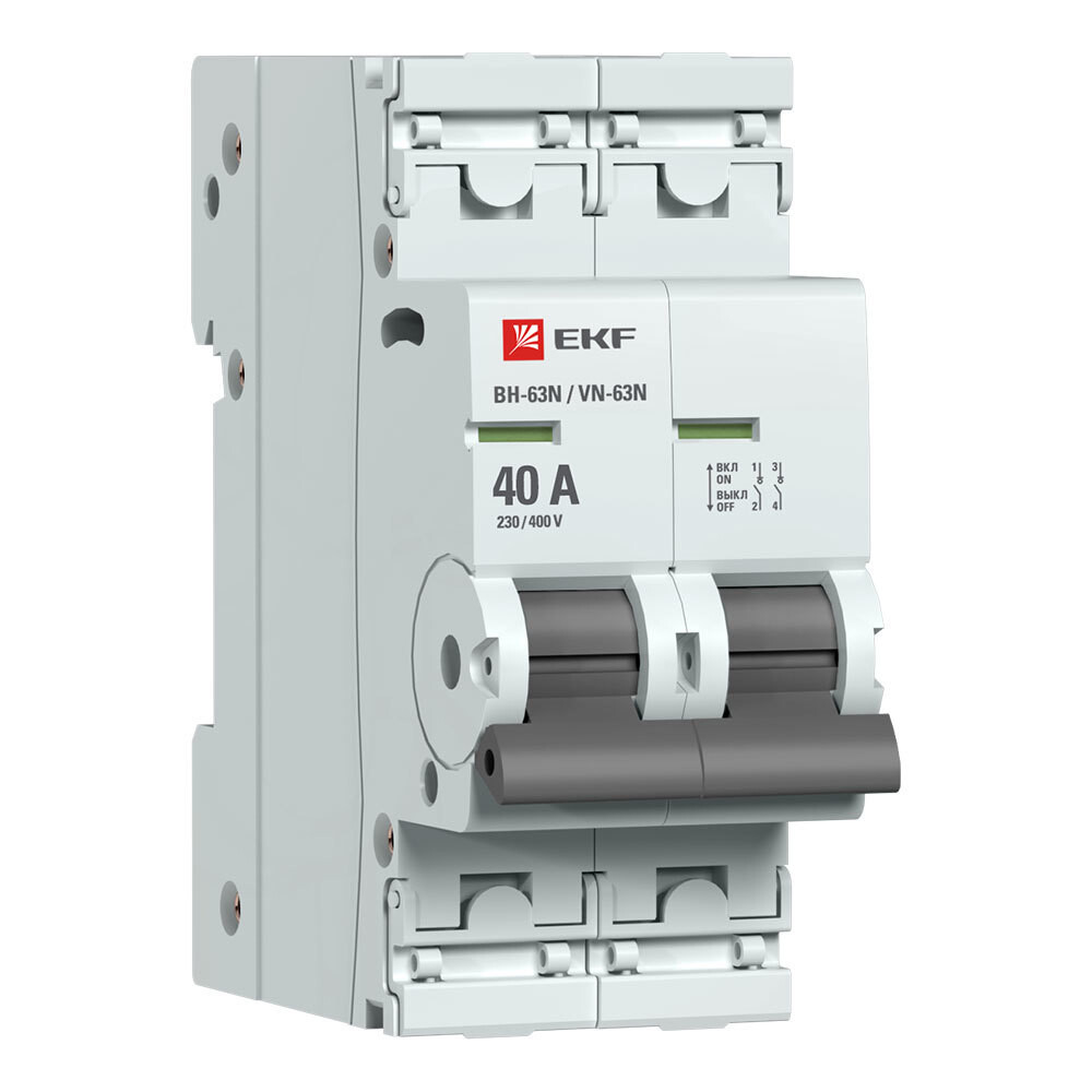 Выключатель нагрузки EKF PROxima ВН-63N 2Р 40А 230 В на DIN-рейку (S63240)