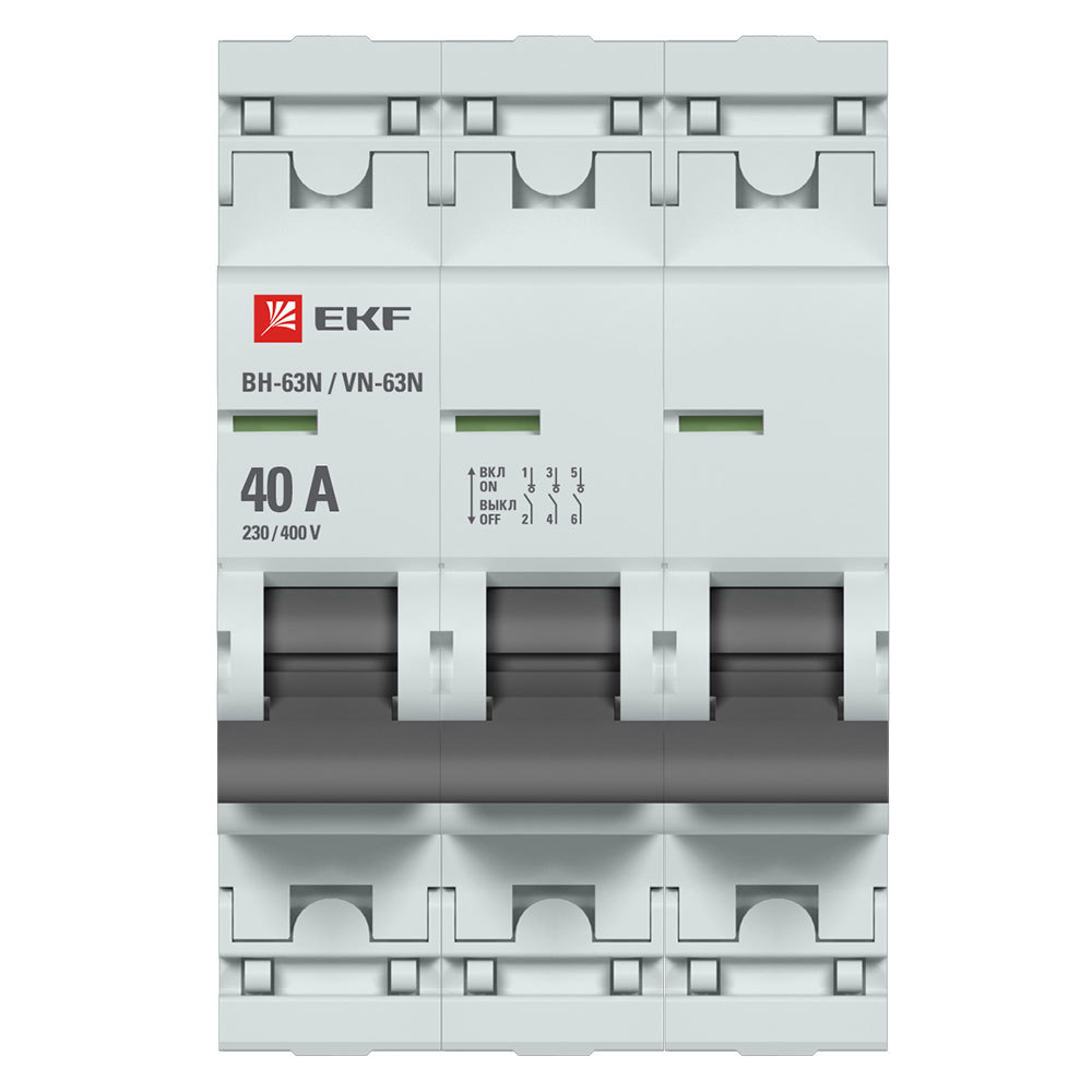 Выключатель нагрузки EKF PROxima ВН-63N 3Р 40А 400 В на DIN-рейку (S63340)