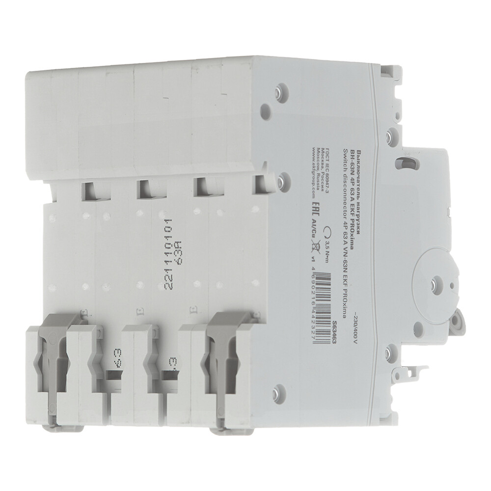 Выключатель нагрузки EKF PROxima ВН-63N 4Р 63А 400 В на DIN-рейку (S63463)