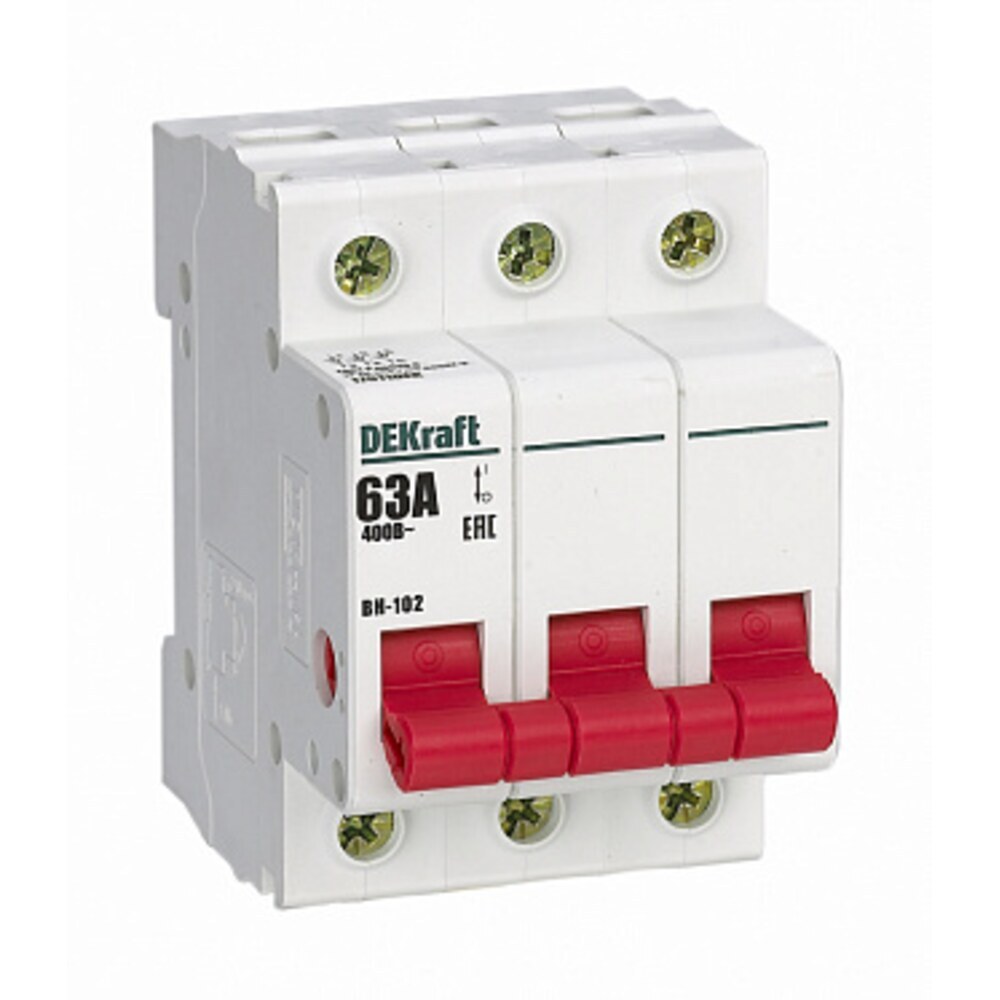 Выключатель-разъединитель Dekraft ВН-102 3P 63А 400 В на DIN-рейку (17011DEK)