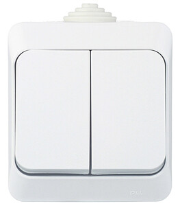 Предназначена для внешней проводки. Степень защиты от влаги IP44 позволяет устанавливать выключатель на улице или в бане.