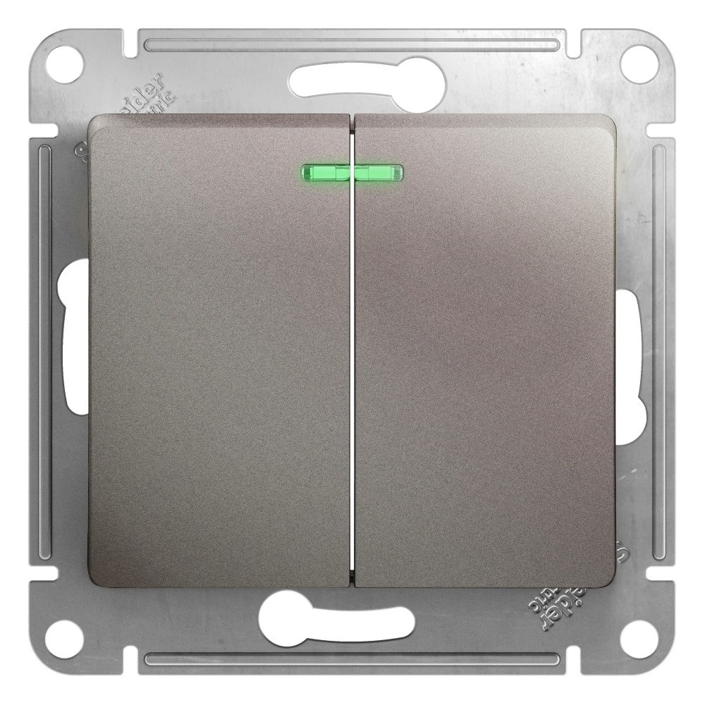 Выключатель Systeme Electric Glossa двухклавишный встраиваемый платина с подсветкой (GSL001253)