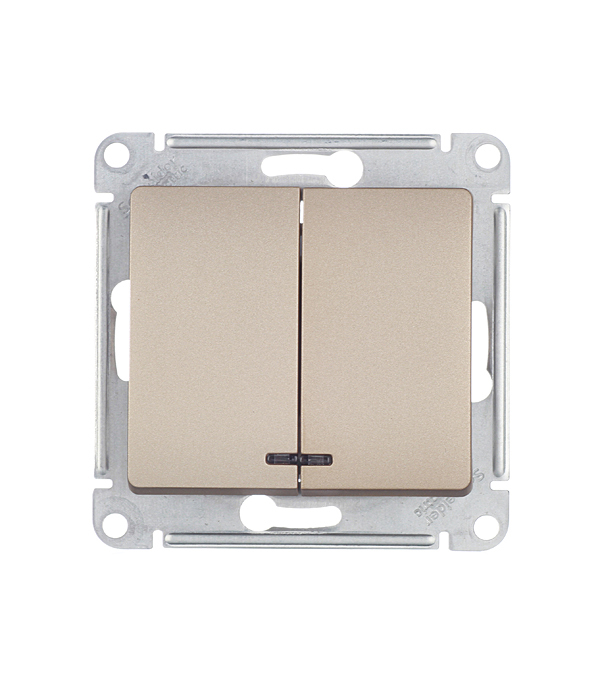 Выключатель Systeme Electric Glossa двухклавишный встраиваемый титан с подсветкой (GSL000453)