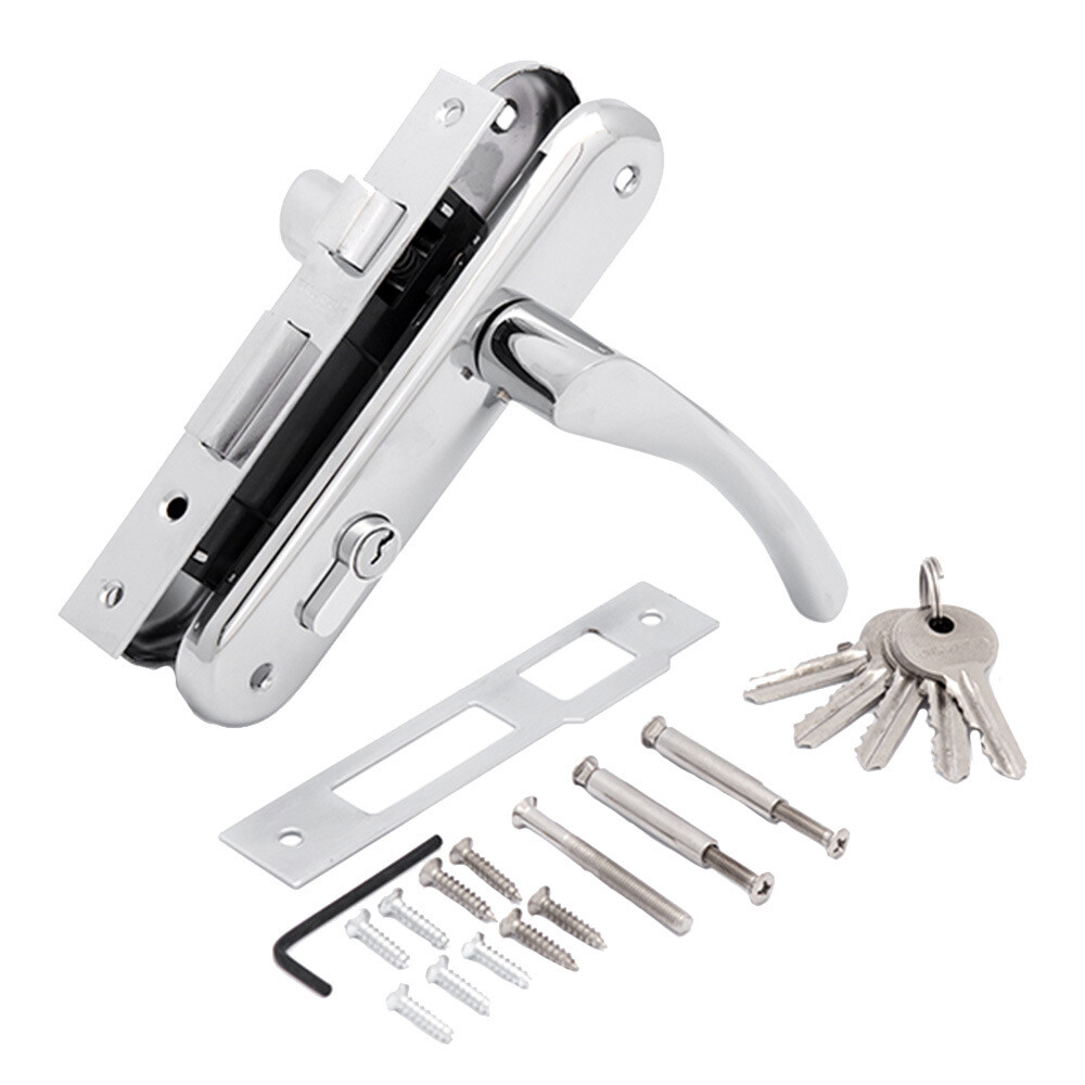 Комплектация: замок врезной, 2 ручки на планке, цилиндровый механизм 5 пинов, ответная планка, пластиковая вставка под ответную планку, квадрат, стяжные винты для крепления ручек, шурупы в цвет планки, 5 английских ключей.