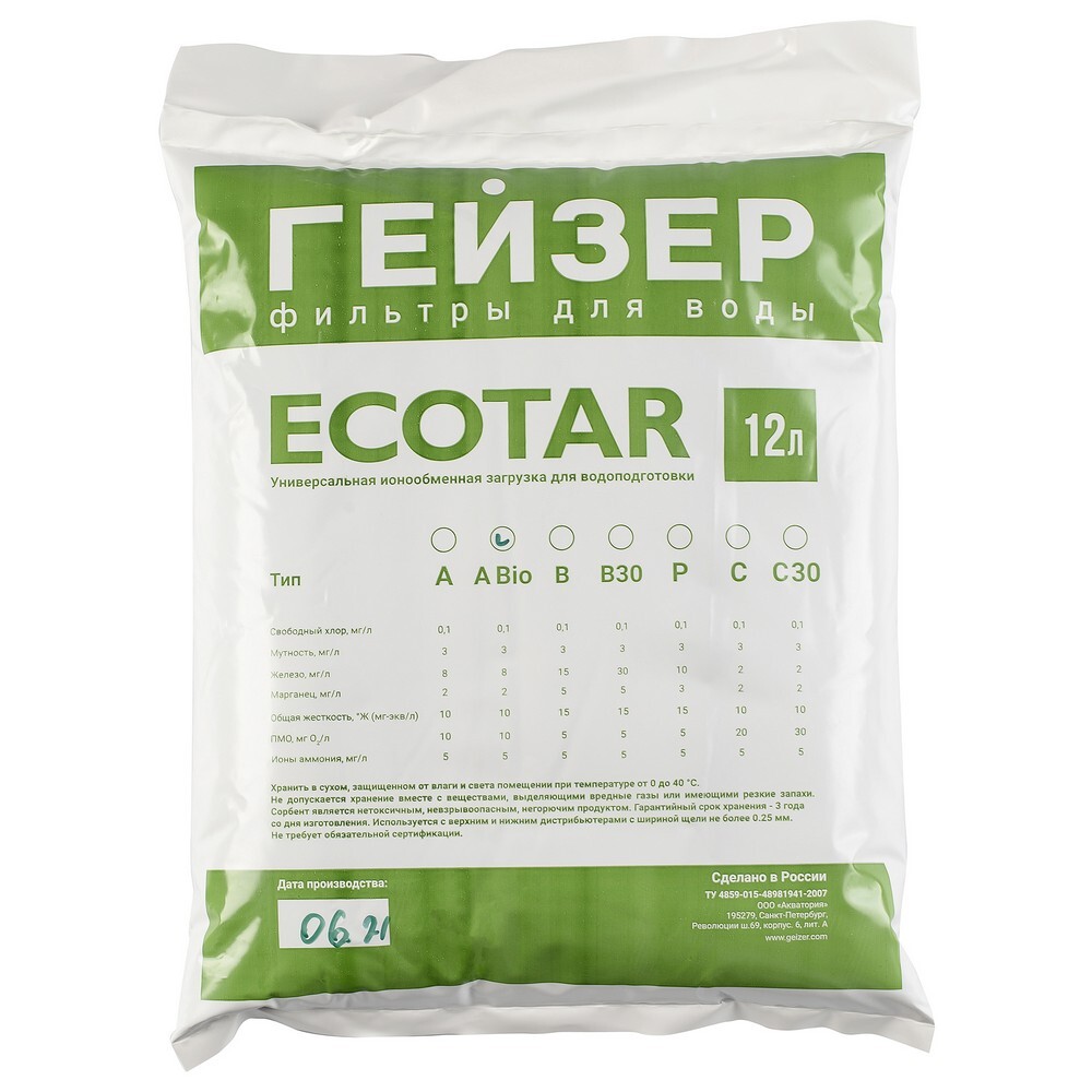 Засыпка фильтра Гейзер Экотар А Био для холодной воды 12 л