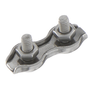 Зажим Duplex для сращивания стальных тросов, канатов размером 2 мм. Также он применяется для создания петель на концах тросов. Двойной зажим Duplex гораздо прочнее при сращивании одинарного Simplex. Независимо от типа, рекомендуется устанавливать не менее двух стальных зажимов.