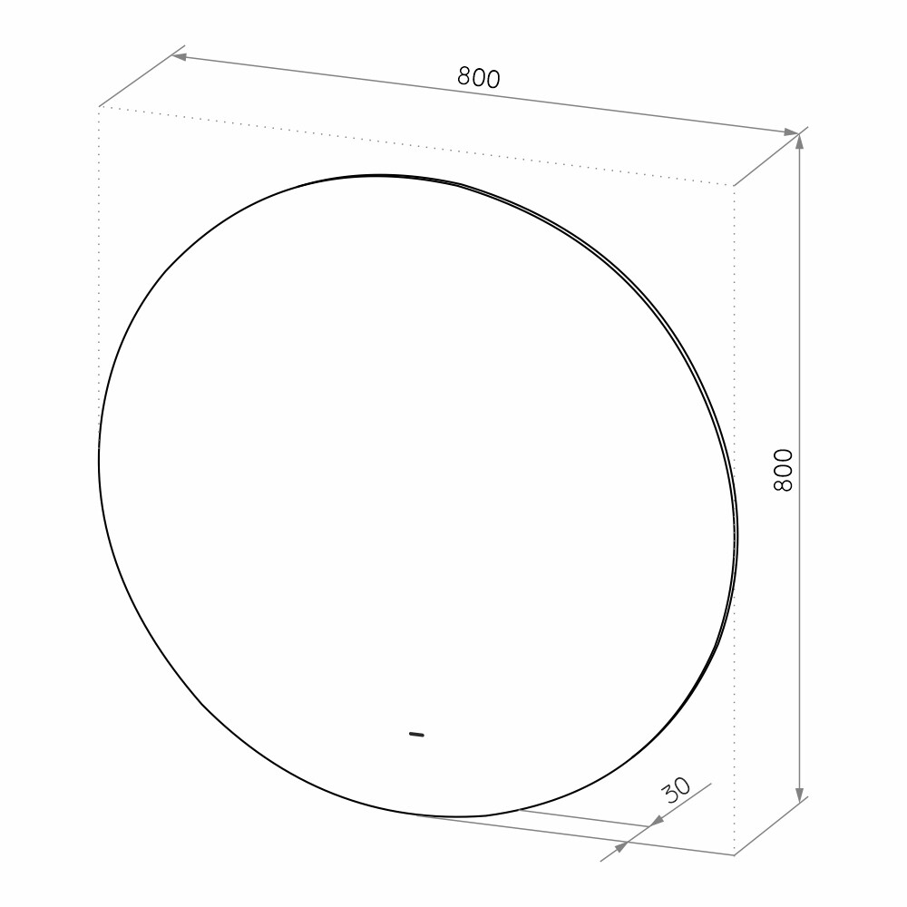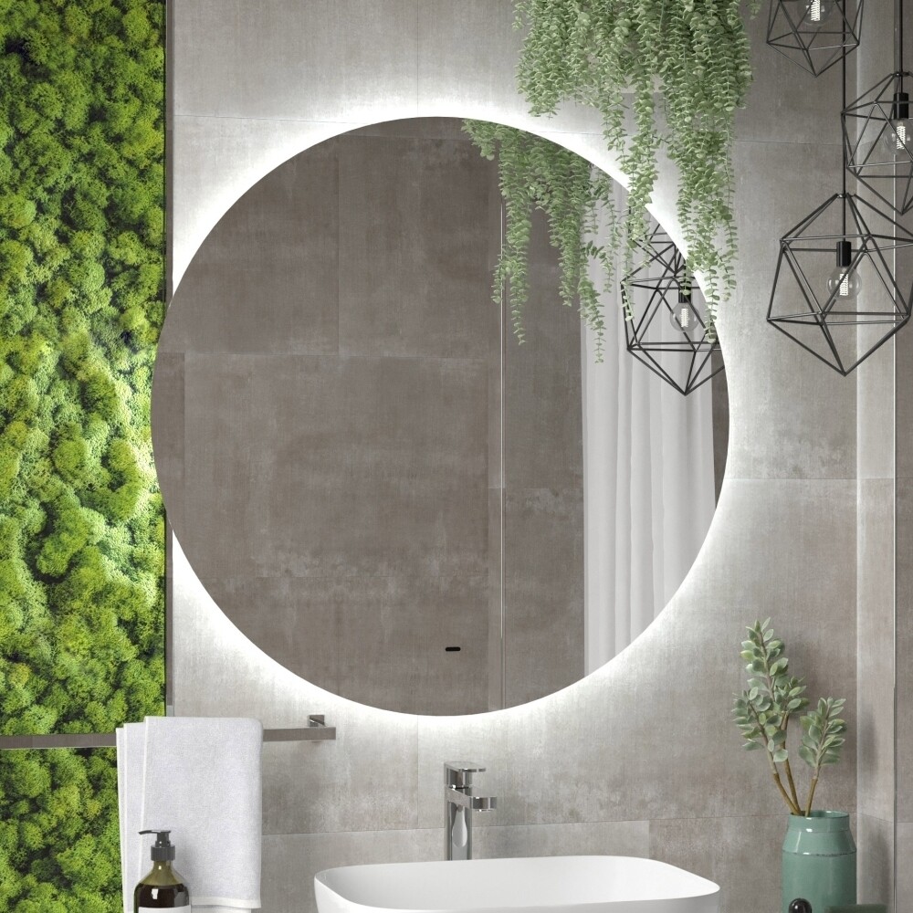 Зеркало Lono led имеет диаметр 800 мм, бесконтактный сенсор и открытую подсветку. Источник питания – розетка.