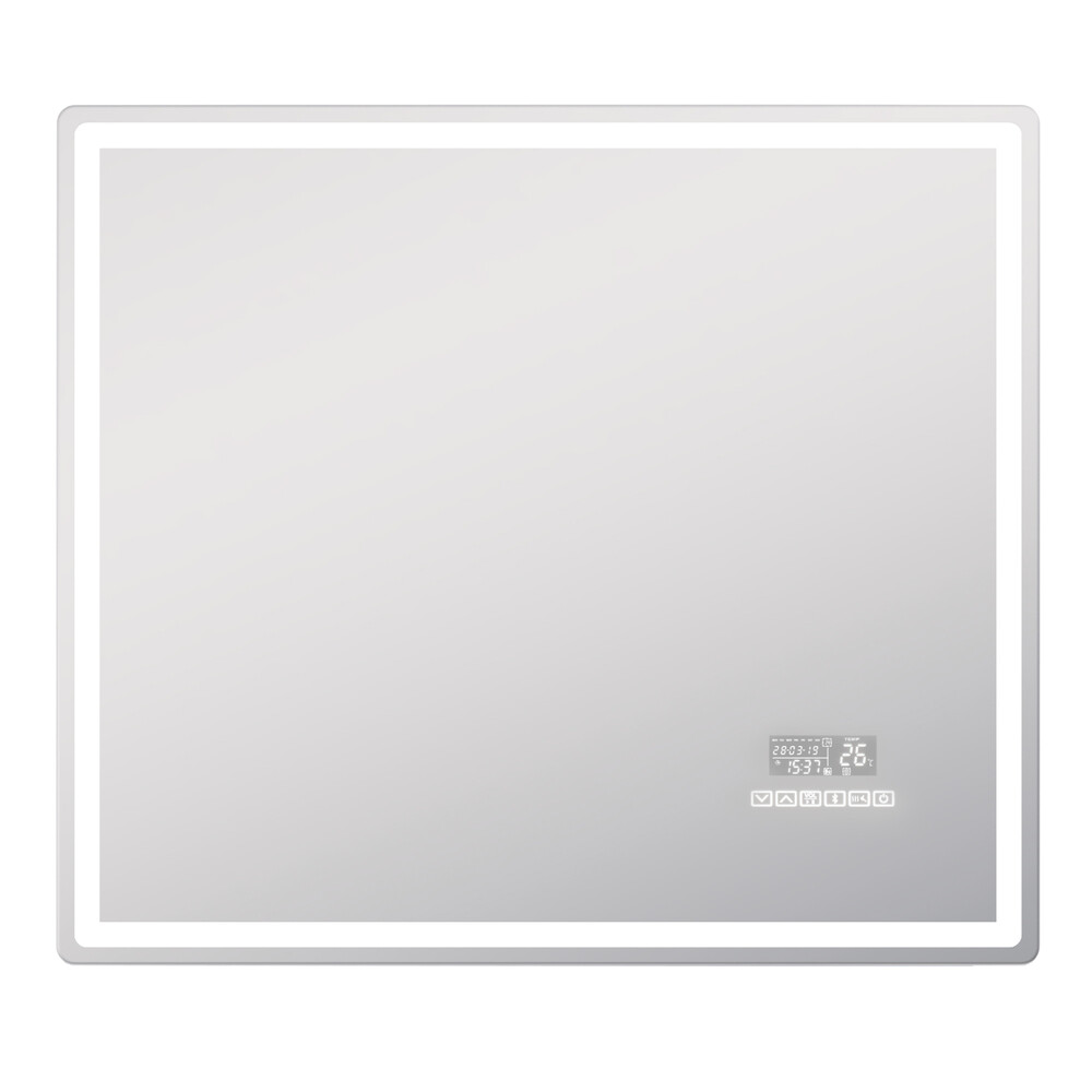 Зеркало имеет голосовое и сенсорное управление, светодиодную подсветку, часы, дату, функцию антизапотевания. Также, оснащено Media блоком c подключением Bluetooth.