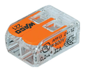 Первоначальная цена составляла 1623 ₽.1576 ₽Текущая цена: 1576 ₽.упак.Клемма на 2 провода Wago 0,5-6 кв.мм с рычажками без пасты (50 шт.) (221-612)