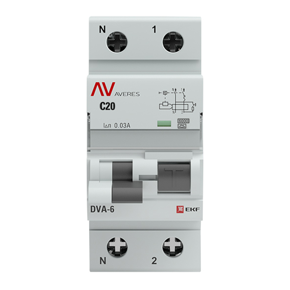 Автомат дифференциальный EKF Averes DVA-6 20А 1P+N тип A 30 мА 6 кА (rcbo6-1pn-20C-30-a-av)