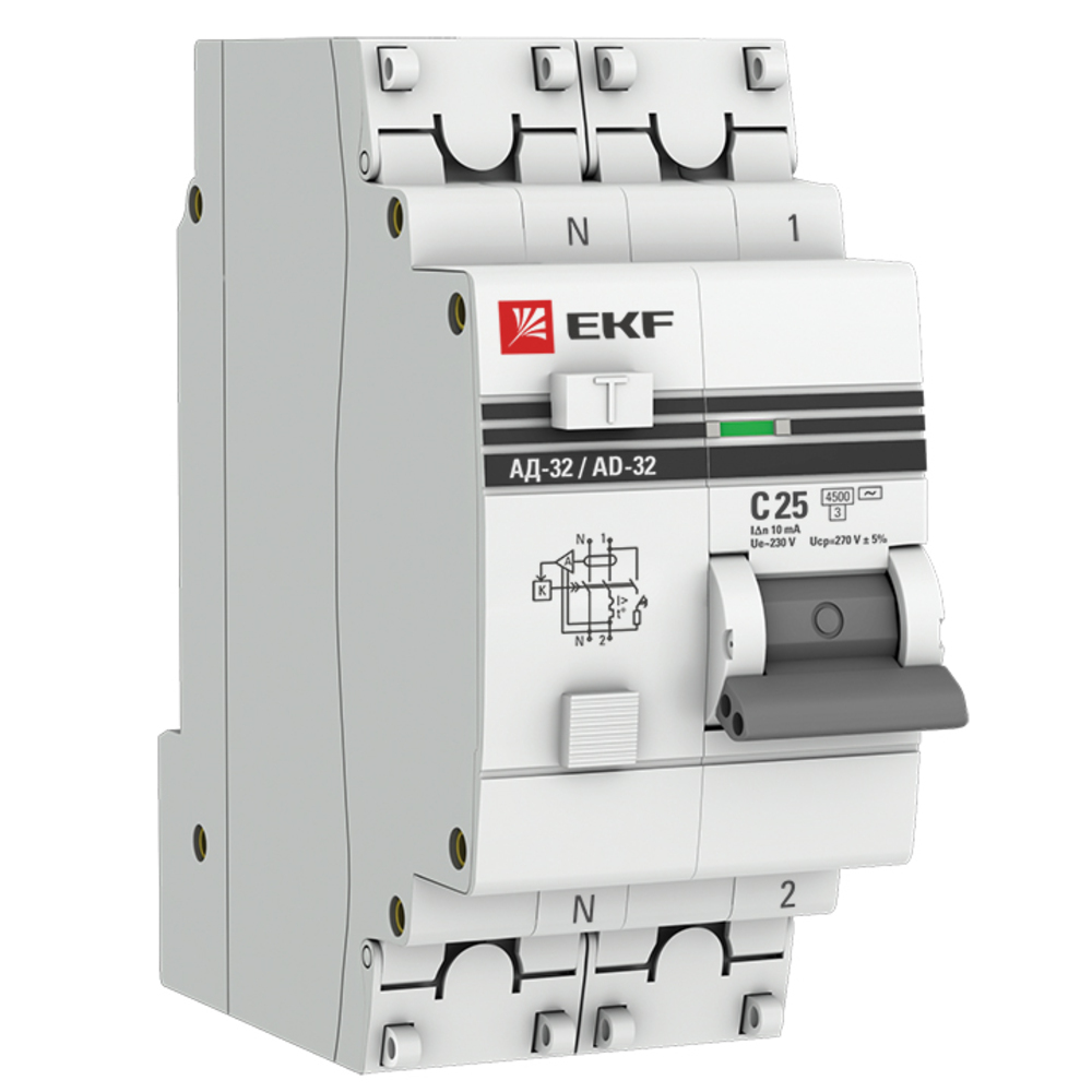 Автомат дифференциальный EKF PROxima АД-32 25А 1P+N тип AC 10 мА 4,5 кА (DA32-25-10-pro)