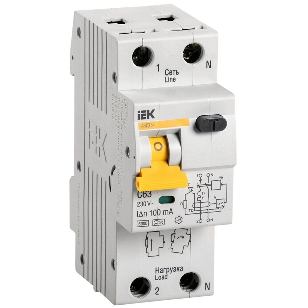 Автомат дифференциальный IEK Karat 63А 1P+N тип A 100 мА 6 кА (MAD22-5-063-C-100)