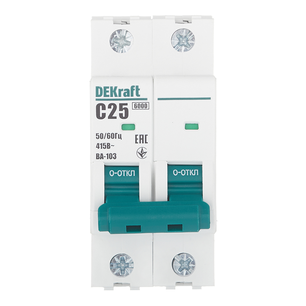 Автоматический выключатель модульный Dekraft BA-103 2P 25А тип C 6 кА 230/400 В (12291DEK)