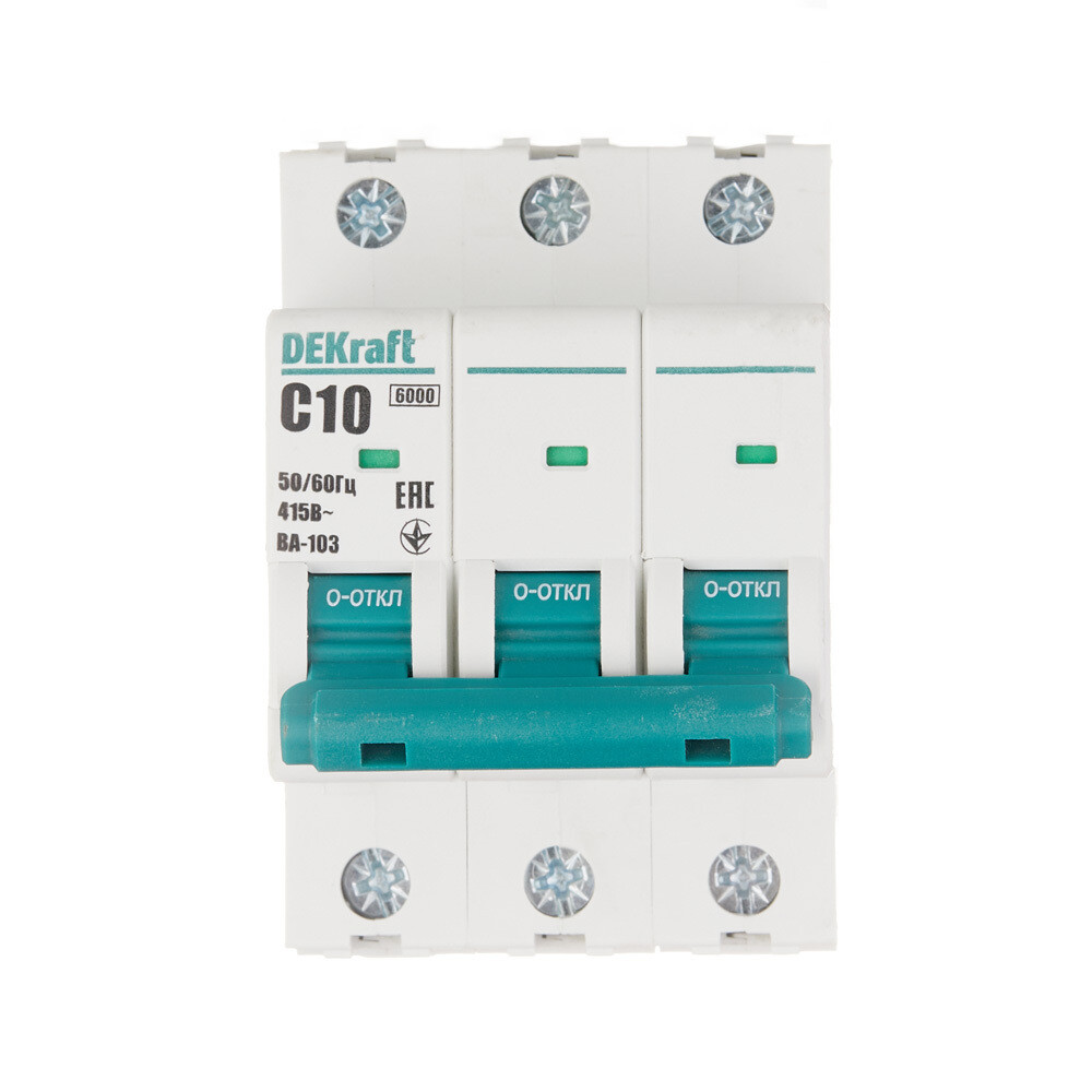 Автоматический выключатель модульный Dekraft BA-103 3P 10А тип C 6 кА 230/400 В (12303DEK)
