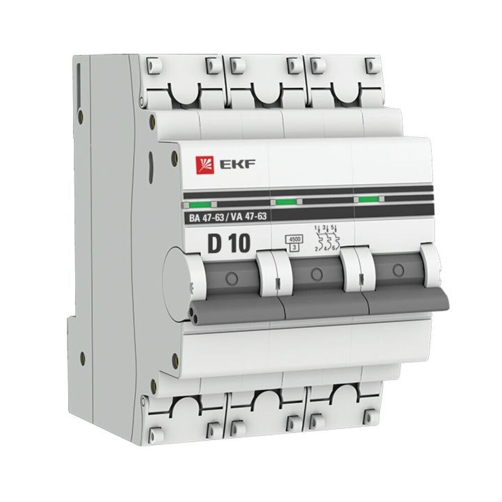 Автоматический выключатель модульный EKF PROxima ВА 47-63 3P 10А тип D 4,5 кА 400 В (mcb4763-3-10D-pro)