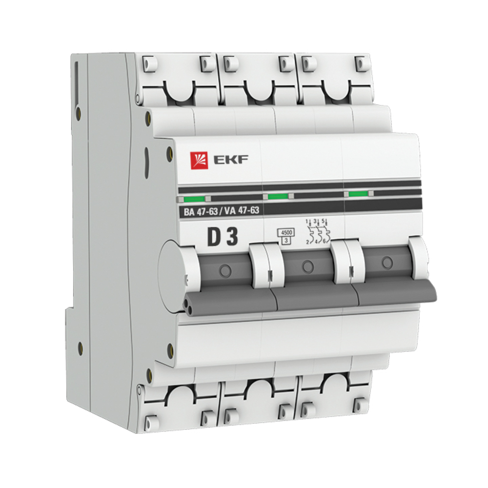 Автоматический выключатель модульный EKF PROxima ВА 47-63 3Р 3А тип D 4,5 кА 400 В (mcb4763-3-03D-pro)