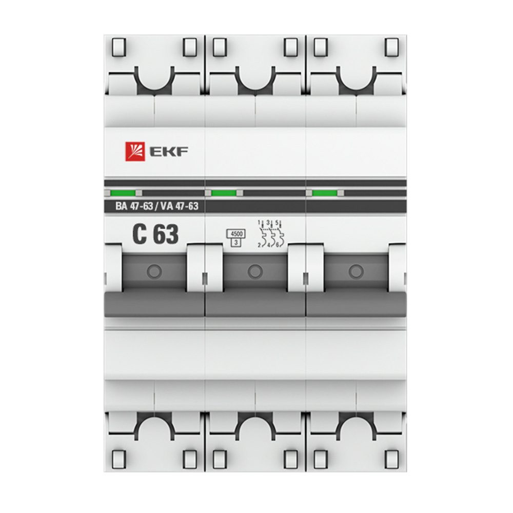 Автоматический выключатель модульный EKF PROxima ВА 47-63 3Р 63А тип C 4,5 кА 400 В (mcb4763-3-63C-pro)