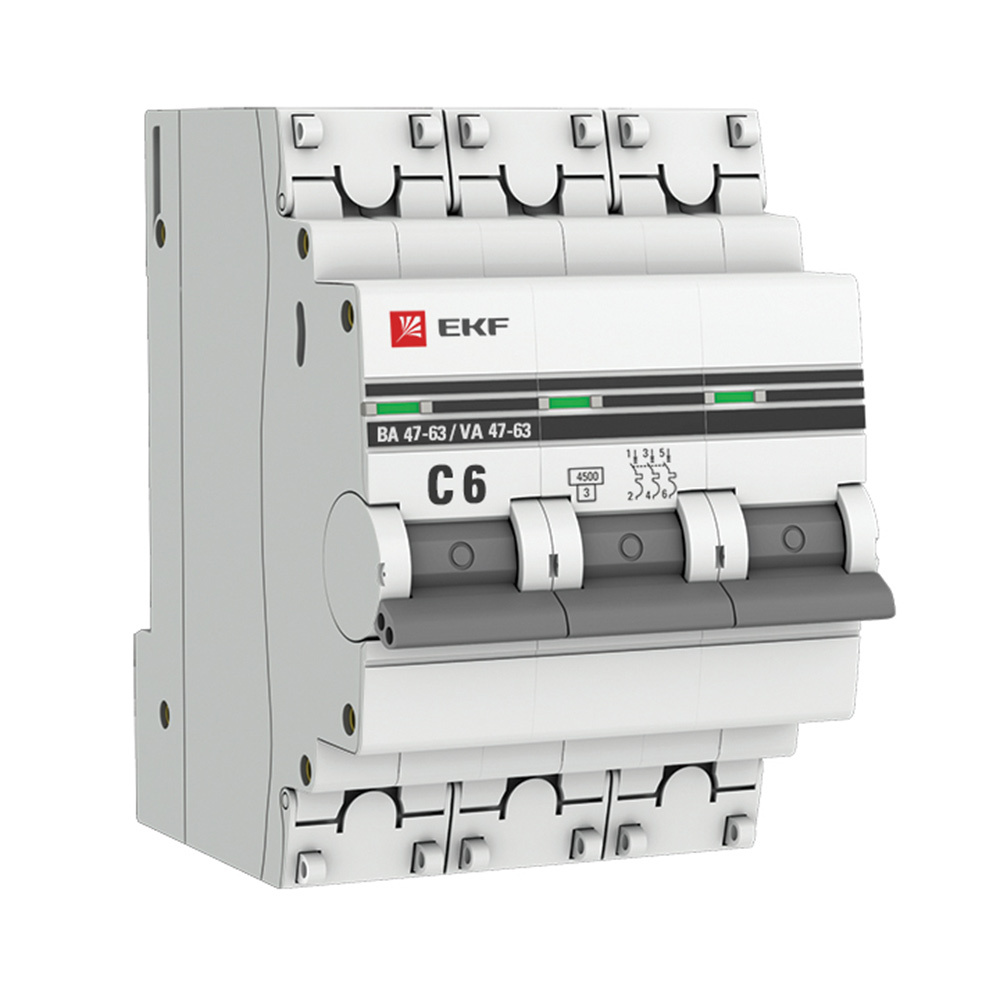 Автоматический выключатель модульный EKF PROxima ВА 47-63 3Р 6А тип C 4,5 кА 400 В (mcb4763-3-06C-pro)