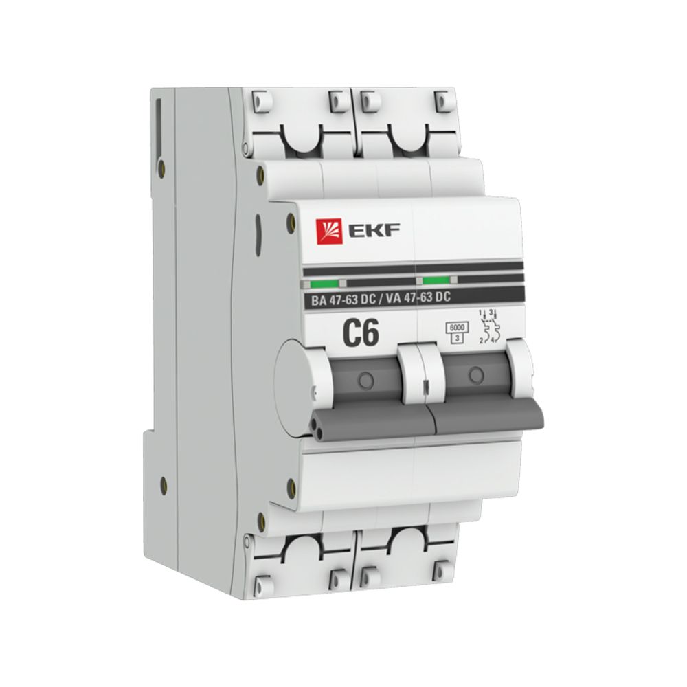 Автоматический выключатель модульный EKF PROxima ВА 47-63 DC 2Р 6А тип C 6 кА 230 В (mcb4763-DC-2-06C-pro)