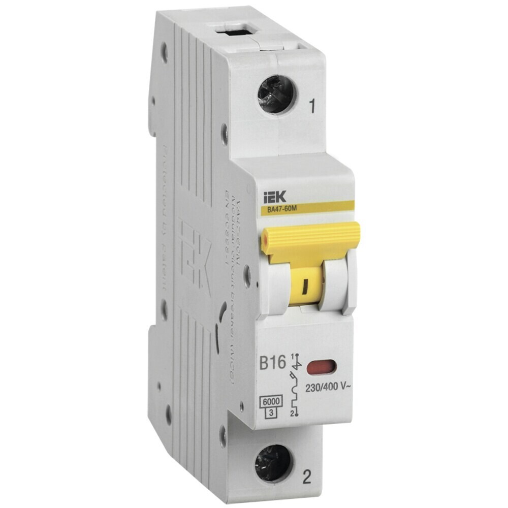 Автоматический выключатель модульный IEK Karat ВА47-60M 1P 16А тип B 6 кА 230/400 В (MVA31-1-016-B)