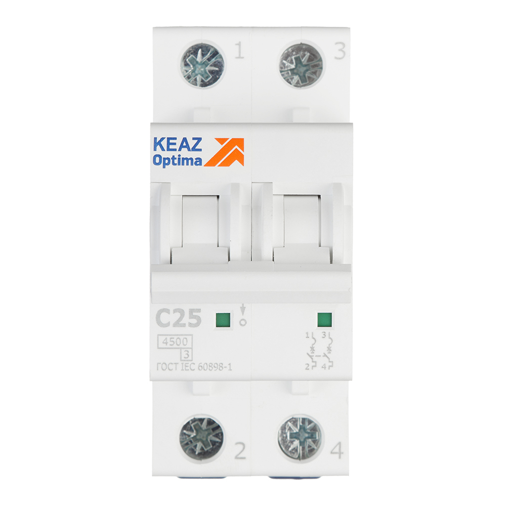 Автоматический выключатель модульный КЭАЗ OptiDin BM63 2P 25А тип C 4,5 кА 230/400 В (326805)