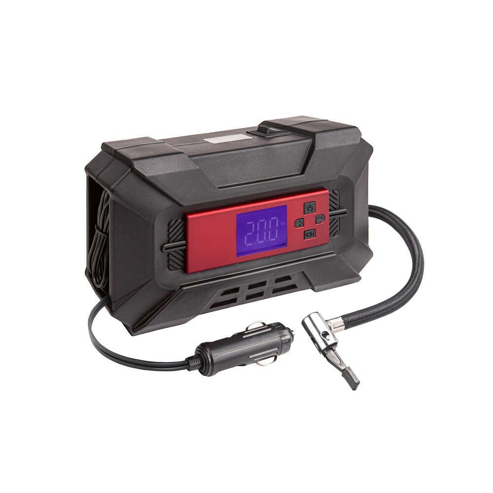 Цифровой компрессор с автостопом DSV, оснащенный: LED фонарем, набором переходных штуцеров, может использоваться для накачивания шин автомобилей и другого транспорта, различных надувных изделий, спортивного инвентаря. Производительность 30 л/мин обеспечивает комфортную скорость накачивания.