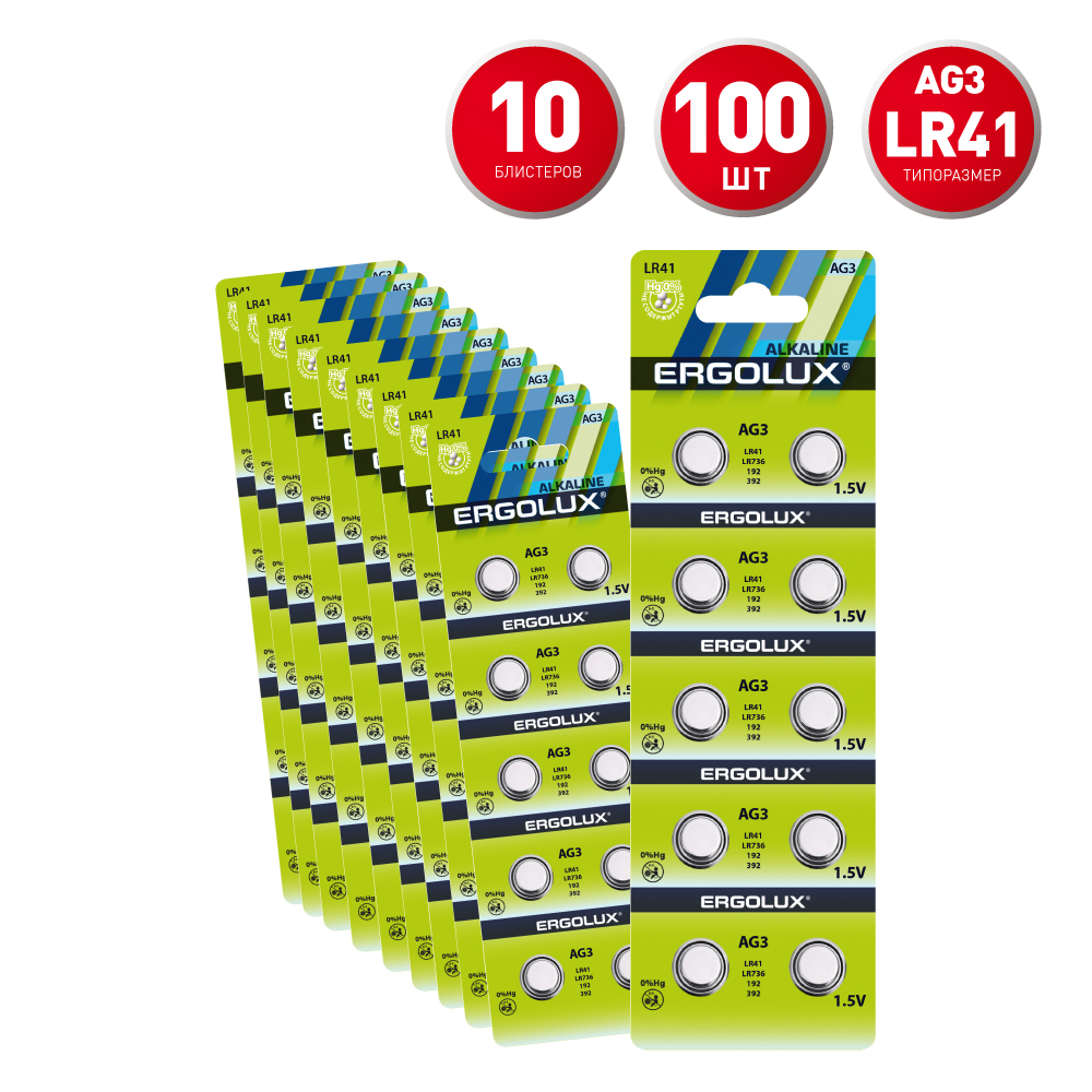 Батарейка Ergolux таблетка AG3 1,5 В (100 шт.) (AG3-BP10)