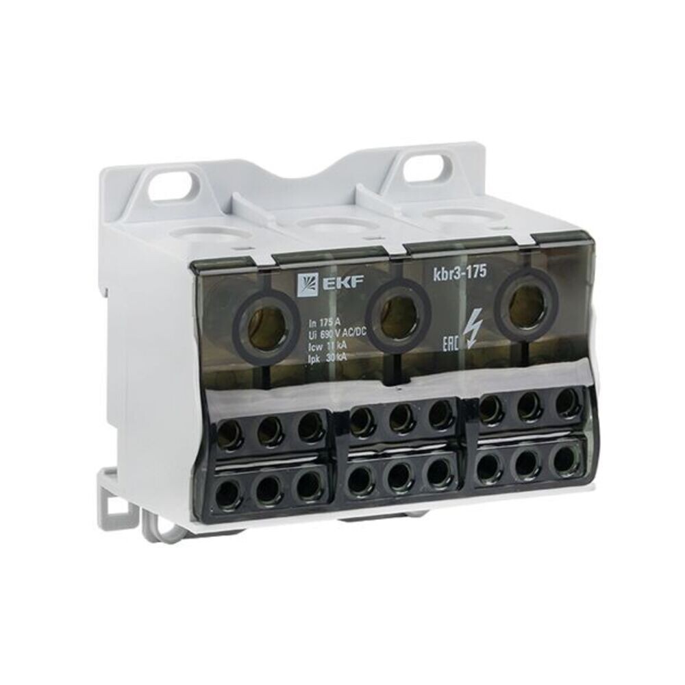 Блок распределительный тройной EKF PROxima на DIN-рейку и монтажную панель 84х75х49 мм 690 В IP20 175 А (kbr3-175)