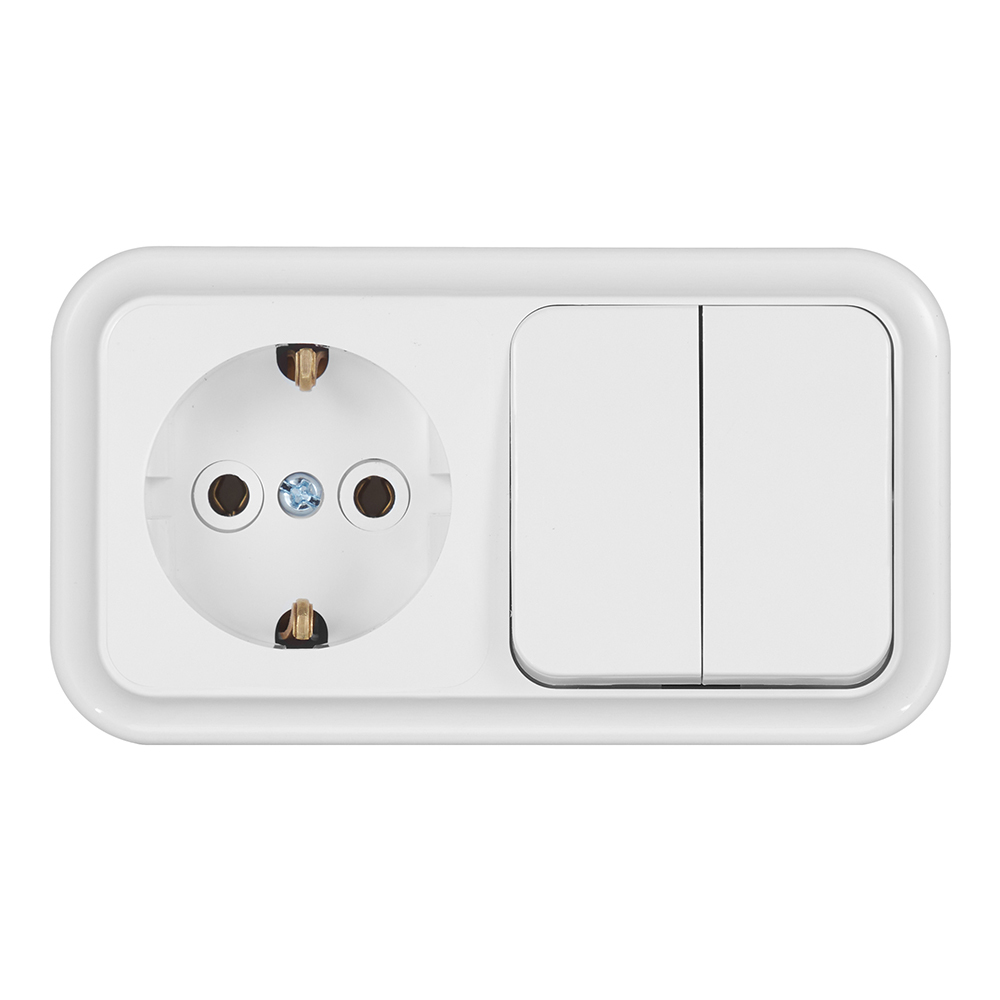 Блок выключатель и розетка Svet двухклавишный накладной белый (EV0362-5220)