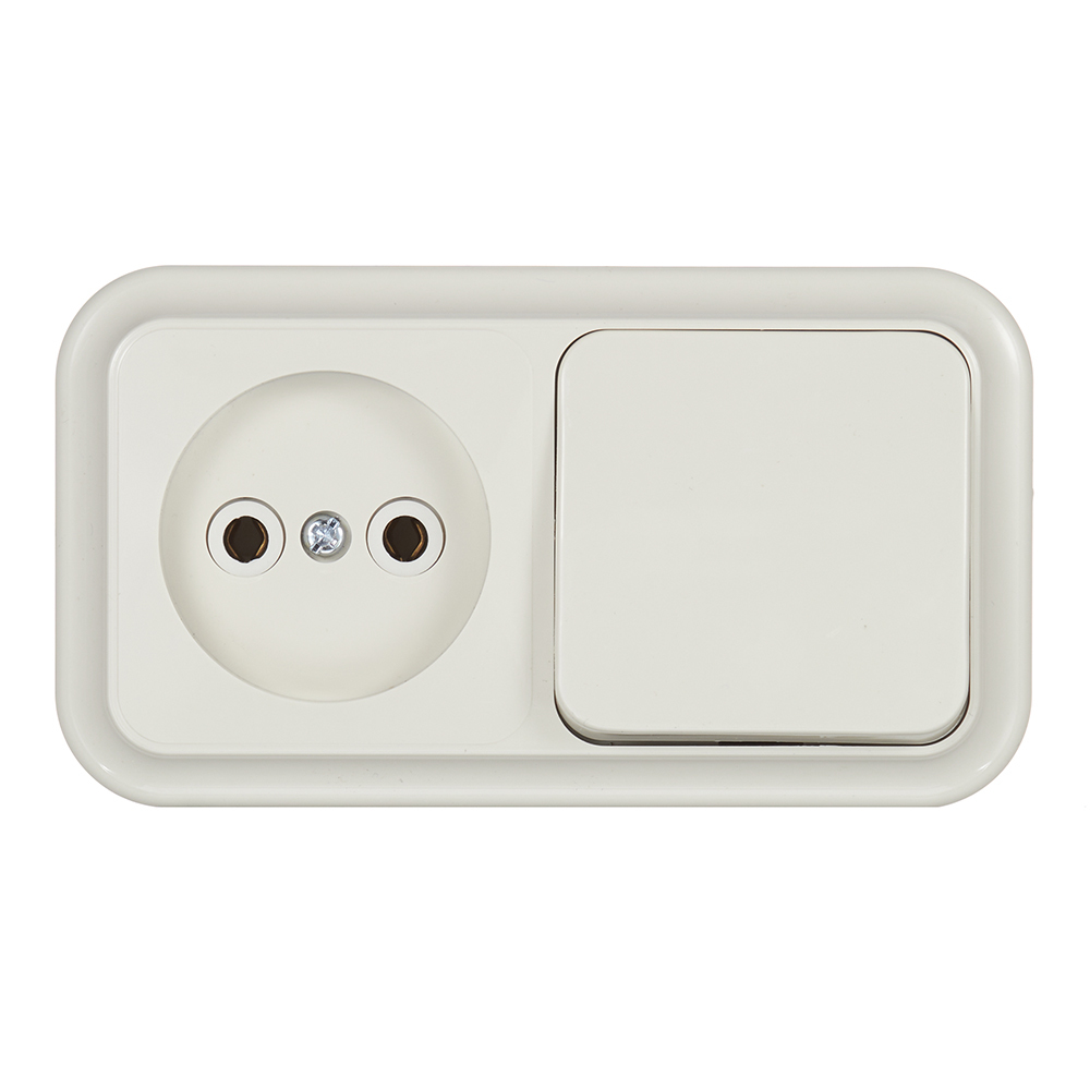 Блок выключатель и розетка Svet одноклавишный накладной бежевый (EV0362-5142)