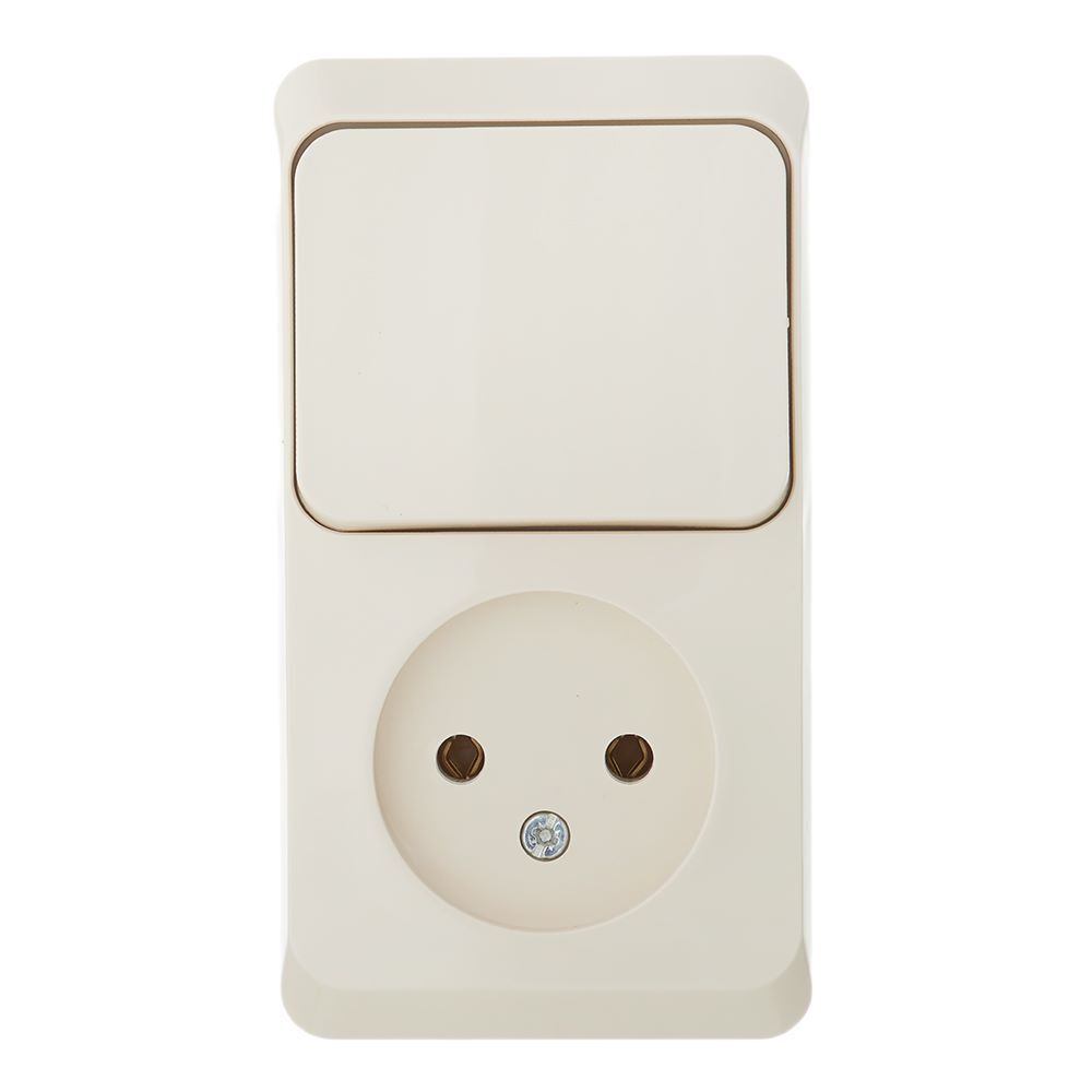 Блок выключатель и розетка Systeme Electric Этюд одноклавишный накладной кремовый (BPA16-204K)