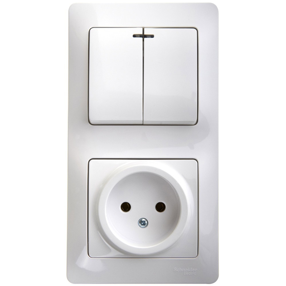 Блок выключатель и розетка Systeme Electric Glossa двухклавишный встраиваемый белый с подсветкой (GSL000173)